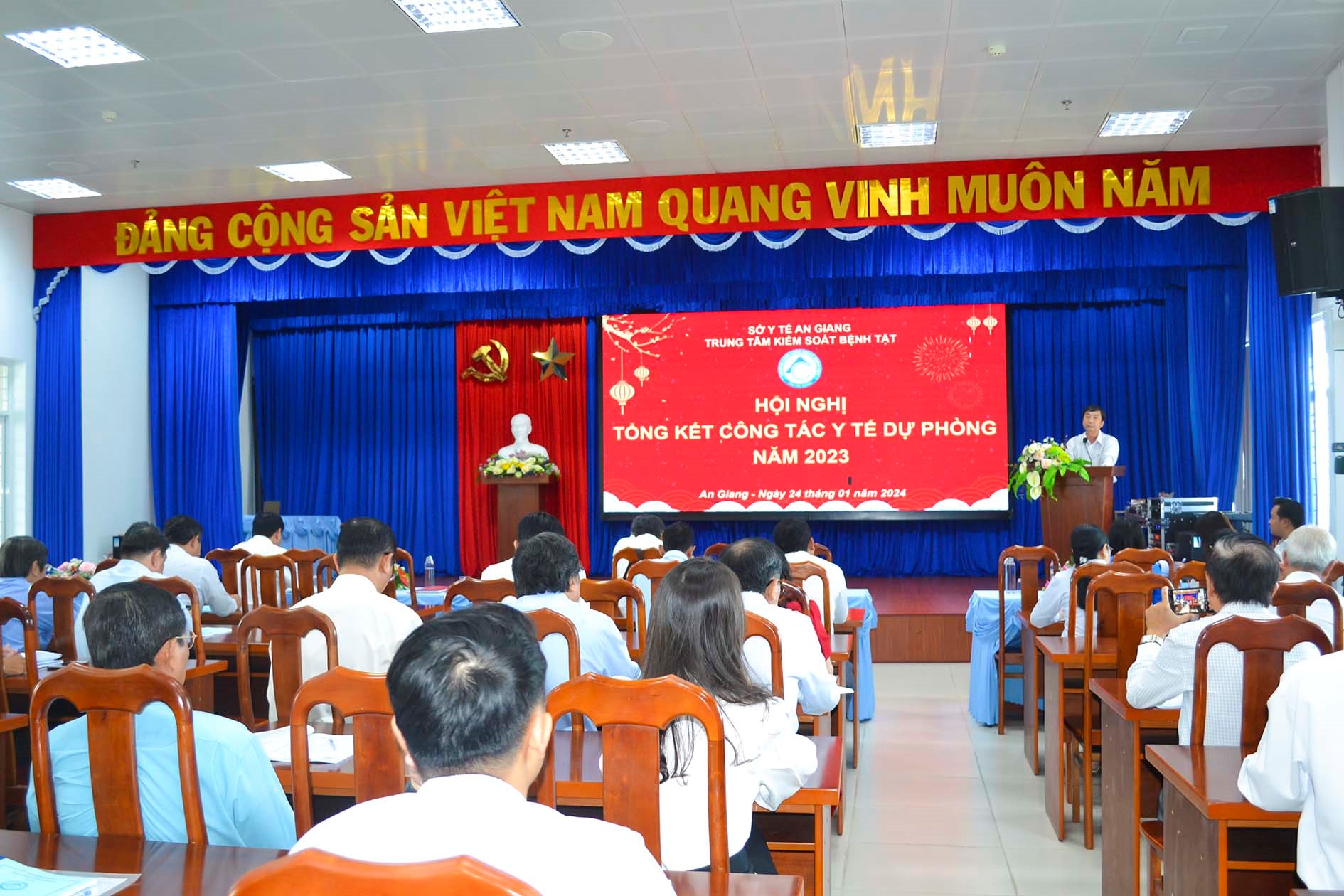 Sáng ngày 24/01/2024, Trung tâm Kiểm soát bệnh tật An Giang (TT.KSBT) tổ chức Hội nghị tổng kết công tác y tế dự phòng năm 2023 và triển khai nhiệm vụ năm 2024. Bs.CKII Phan Vân Điền Phương – Phó Giám đốc Sở Y tế đến dự và chỉ đạo Hội nghị.