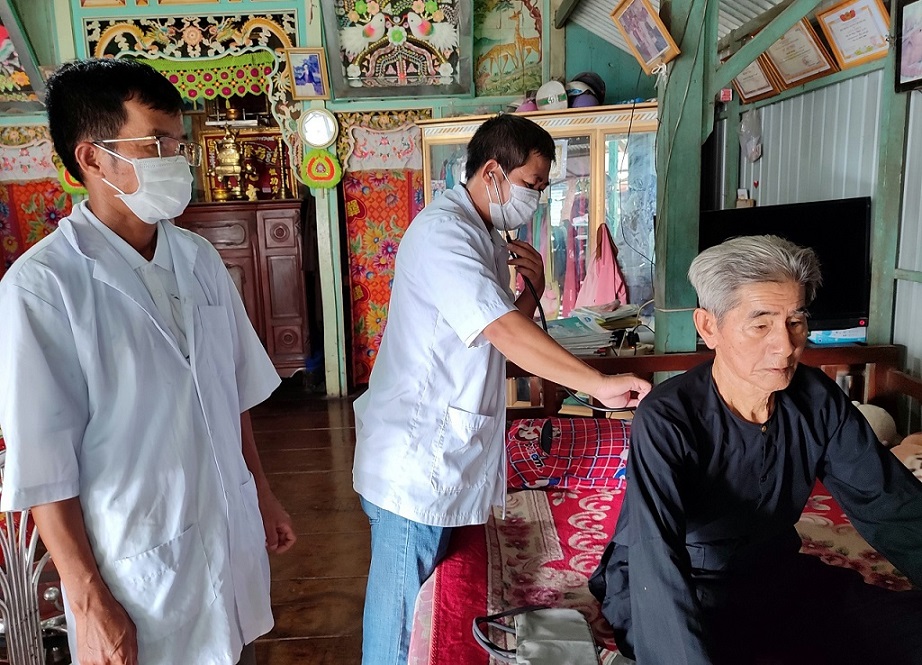 Ông Lê Văn Lực, 84 tuổi, ở ấp Phú Hạ, xã Phú Thọ, bị bệnh cao huyết áp nhiều năm qua. Trước đây ông thường phải đến Bệnh viện để khám và lấy thuốc điều trị. Từ tháng 02/2023, Trạm Y tế xã Phú Thọ đã triển khai mô hình khám sức khỏe định kỳ cho Người cao tuổi và người không có điều kiện đến khám chữa bệnh tại các cơ sở y tế hàng tháng. Ông Lực là một trong những người cao tuổi được trạm quản lý, khám sức khỏe định kỳ trong mô hình. Ông Lê Văn Lực phấn khởi chia sẻ: “Hàng tháng ông cùng mọi người cao tuổi ở xã được y, bác sỹ của Trạm đến tại nhà khám, tư vấn sức khỏe và cấp thuốc đều đặn nên tôi rất vui, phấn khởi. Bởi những tiện lợi của mô hình đem lại là không phải chờ đợi lâu, không còn phải làm phiền con cháu chở đi khám, lại được y, bác sỹ thăm hỏi, chăm sóc sức khỏe thường xuyên,…”