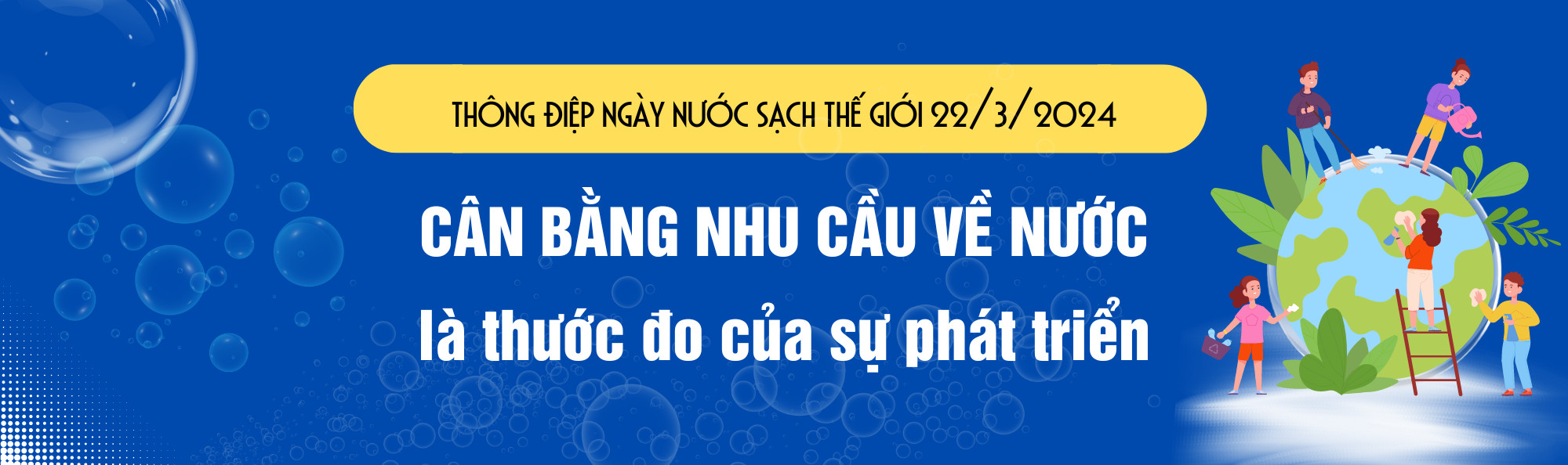 Băng rôn: Thông điệp ngày nước sạch thế giới 22/3/2024 “Cân bằng nhu cầu về nước là thước đo của sự phát triển”