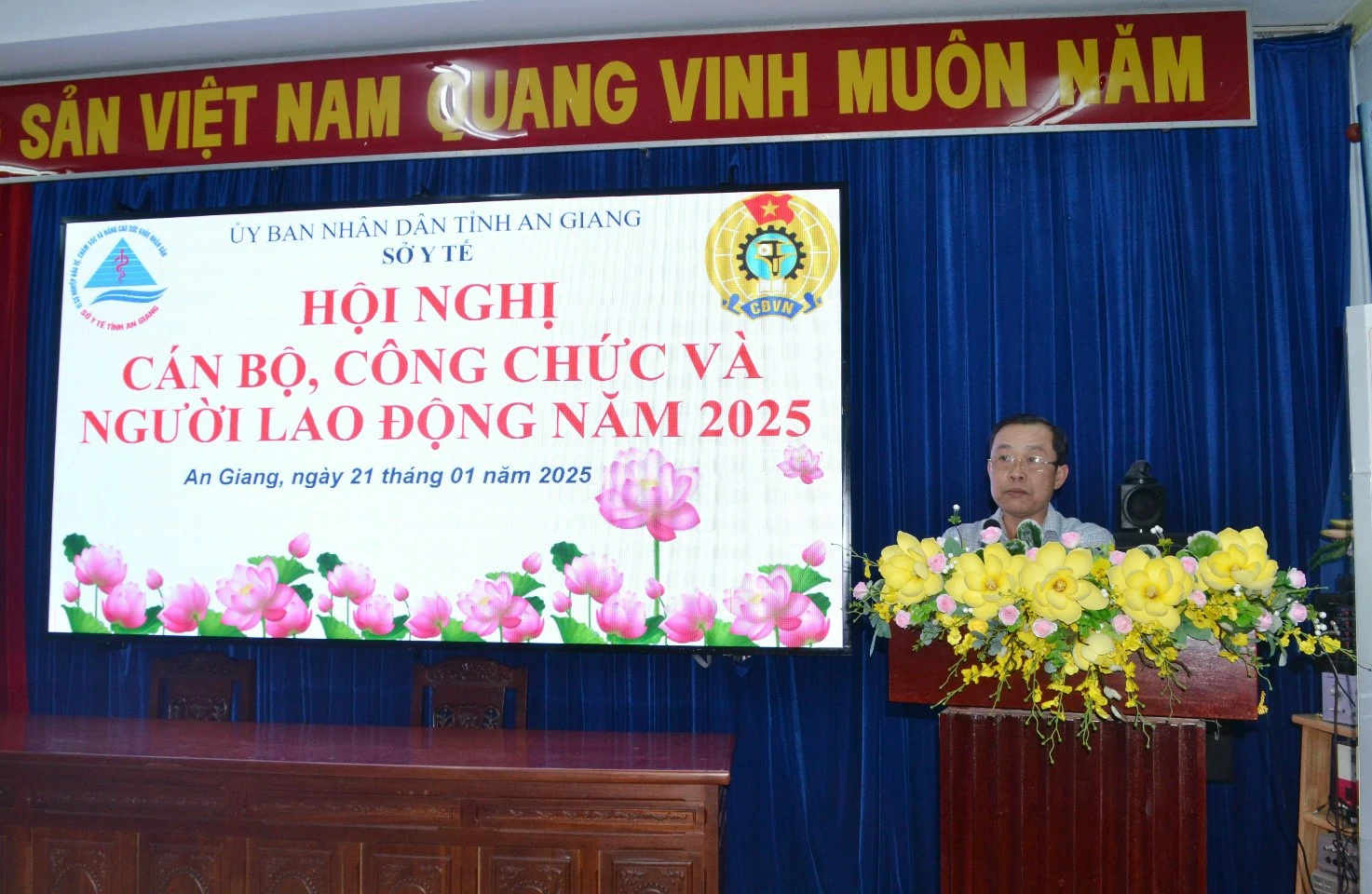 Chiều ngày 21/01/2025, Ban chấp hành công đoàn phối hợp với Văn phòng Sở Y tế An Giang tổ chức Hội nghị cán bộ, công chức và người lao động năm 2025. Bs.CKII Đoàn Thanh Hùng – Phó Giám đốc Sở Y tế – Chủ tịch Công đoàn Sở Y tế chủ trì Hội nghị.