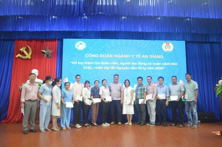 Chiều ngày 21/01/2025, Công đoàn ngành Y tế An Giang đến hỗ trợ thăm hỏi đoàn viên, người lao động có hoàn cảnh khó khăn nhân dịp tết nguyên đán Ất Tỵ năm 2025 đang công tác tại Trung tâm Kiểm soát bệnh tật.