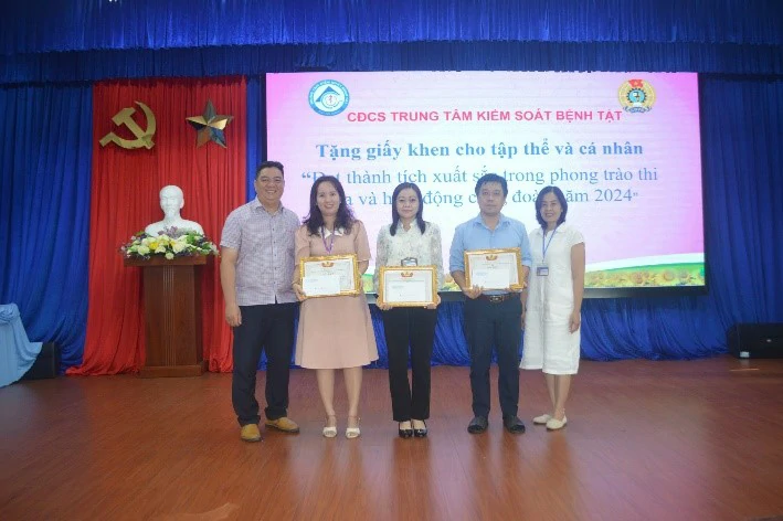 Đại diện Công đoàn ngành Y tế, đồng chí Trương Anh Trường – Phó giám đốc Trung tâm Kiểm soát bệnh tật tỉnh trao giấy khen cho 03 tập thể và 07 cá nhân “Đạt thành tích xuất sắc trong phong trào thi đua và hoạt động công đoàn năm 2024”. Đồng thời trao 19 suất hỗ trợ thăm hỏi đoàn viên, người lao động có hoàn cảnh khó khăn đón Tết Ất Tỵ 2025, mỗi suất trị giá 700.000 đồng ./.
