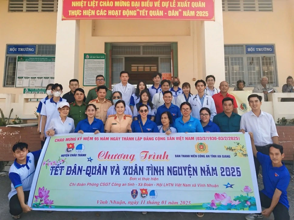 Vừa qua, vào ngày 11/01/2025, Chi đoàn Trung tâm Y tế huyện Châu Thành phối hợp với Đoàn Thanh niên Cộng sản Hồ Chí Minh huyện, Đoàn y, bác sĩ thiện nguyện thành phố Hồ Chí Minh, Câu lạc bộ y, bác sĩ huyện Châu Thành và Chi đoàn Trung tâm Kiểm soát bệnh tật tỉnh An Giang tổ chức chương trình khám chữa bệnh, cấp thuốc miễn phí cho bà con nhân dân tại Vĩnh Nhuận.