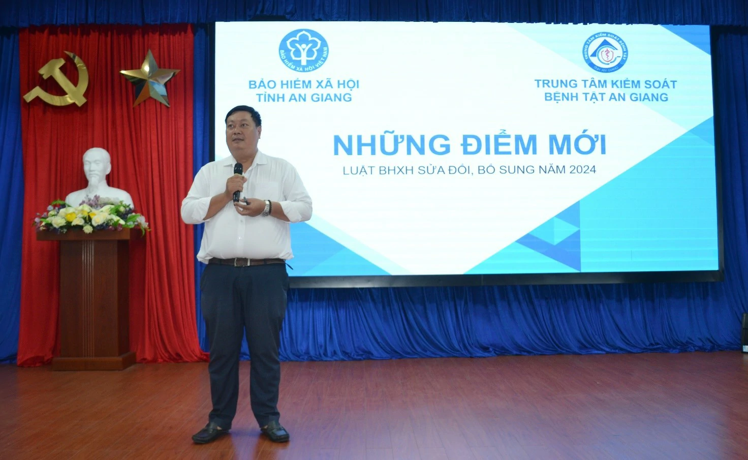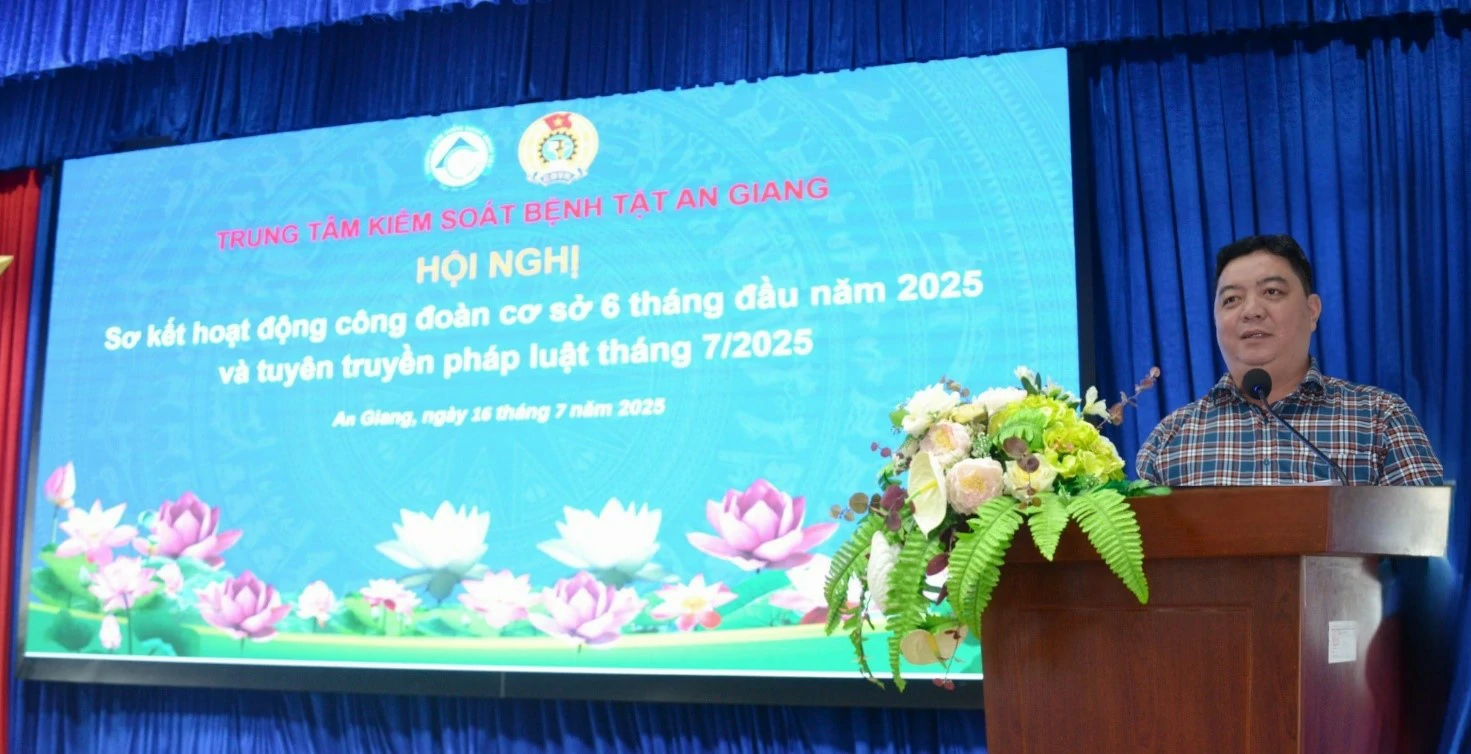 Sáng ngày 16/7/2025, Công đoàn cơ sở Trung tâm Kiểm soát bệnh tật (TT.KSBT) An Giang tổ chức Hội nghị sơ kết hoạt động công đoàn 6 tháng đầu năm, đồng thời triển khai nhiệm vụ trọng tâm cho 6 tháng cuối năm và tuyên truyền pháp luật với chủ đề “Bảo hiểm xã hội và văn bản hướng dẫn, cập nhật điểm mới”. Buổi lễ có sự tham dự của Bs.CKII Trương Anh Trường – Phó Giám đốc, Chủ tịch Công đoàn cơ sở; ông Văng Anh Trung – Phó Giám đốc Bảo hiểm xã hội Khu vực XXXIV.