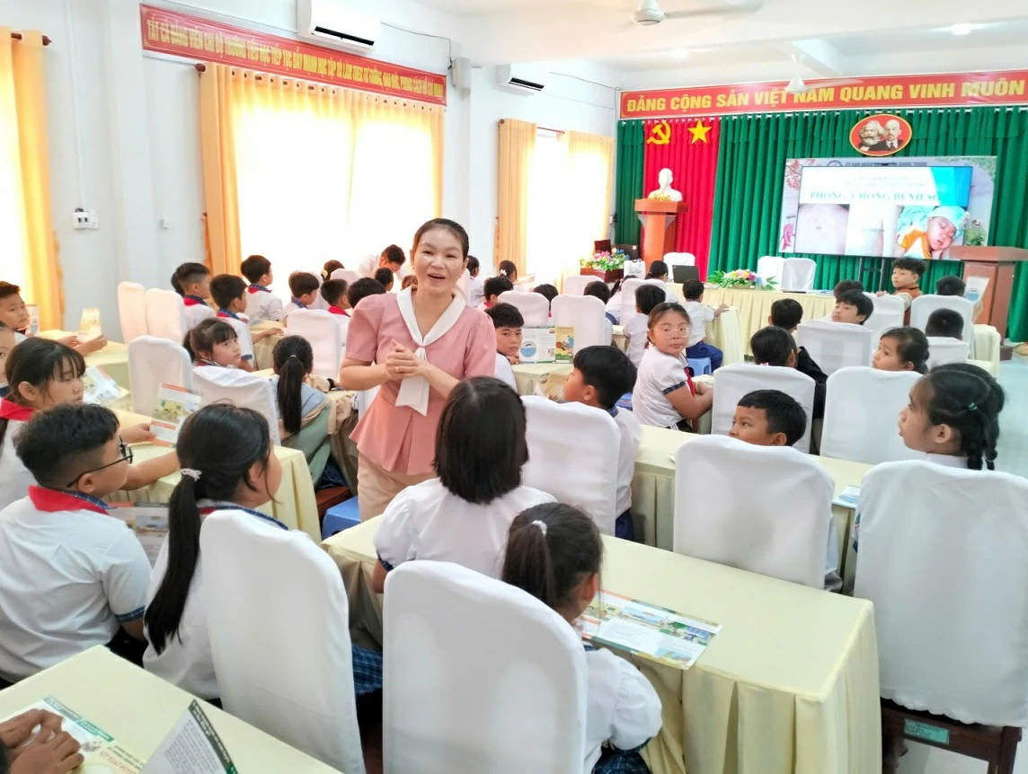 Sáng ngày 11/9, Trung tâm Y tế Giang Thành phối hợp với Ban Giám hiệu Trường Tiểu học Tân Khánh Hoà, xã Giang Thành tổ chức hoạt động truyền thông phòng chống dịch bệnh mùa tựu trường năm học 2025 – 2026, cho hơn 100 học sinh trong toàn trường.