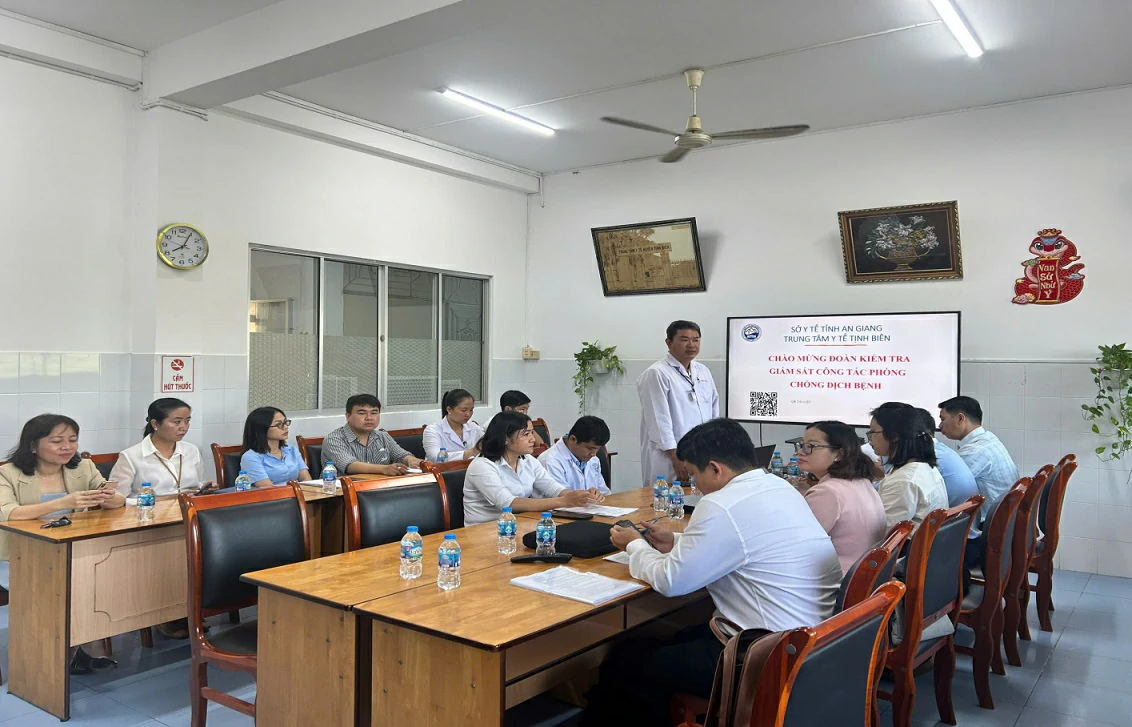 Sáng ngày 11/9/2025, Đoàn giám sát, kiểm tra Sở Y tế An Giang do Bs.CKII Chung Tấn Thịnh – Phó Giám đốc Sở Y tế tỉnh An Giang cùng các thành viên đã có buổi làm việc về công tác hoạt động phòng chống dịch tại Trung tâm Y tế (TTYT) Tịnh Biên. Tiếp đoàn có Bs.CKII Võ Văn Đưng – Phó Giám đốc TTYT.