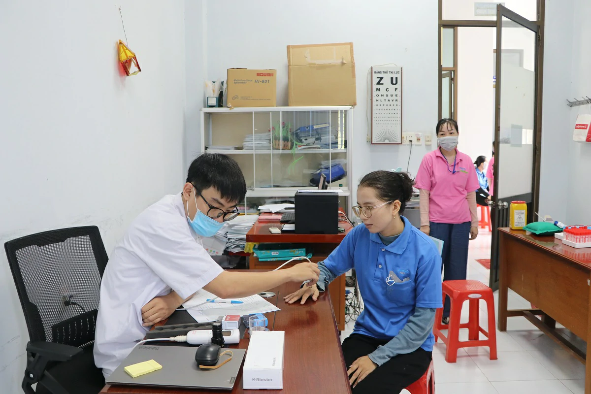 Tại đây, người lao động được lập hồ sơ bệnh nghề nghiệp, khám các chuyên khoa tuần hoàn, hô hấp, da liễu, tiêu hóa, Tai – Mũi – Họng, đo pH da (02 mẫu/ người), đo chức năng hô hấp, đo thính lực sơ bộ, xét nghiệm huyết đồ (Công thức máu), xét nghiệm Men Cholinesteras, xét nghiệm nước tiểu (10 thông số)…. Việc khám bệnh nghề nghiệp cho người lao động không chỉ phát hiện sớm các vấn đề về sức khoẻ, các bệnh phát sinh liên quan đến yếu tố tiếp xúc nghề nghiệp, khám phát hiện bệnh nghề nghiệp (được thực hiện theo Thông tư số 28/2016/TT-BYT ngày 30/6/2016 của Bộ Y tế), mà còn nâng cao nhận thức về An toàn, vệ sinh lao động của người sử dụng lao động và người lao động, cải thiện điều kiện lao động và phòng chống bệnh nghề nghiệp cho người lao động.