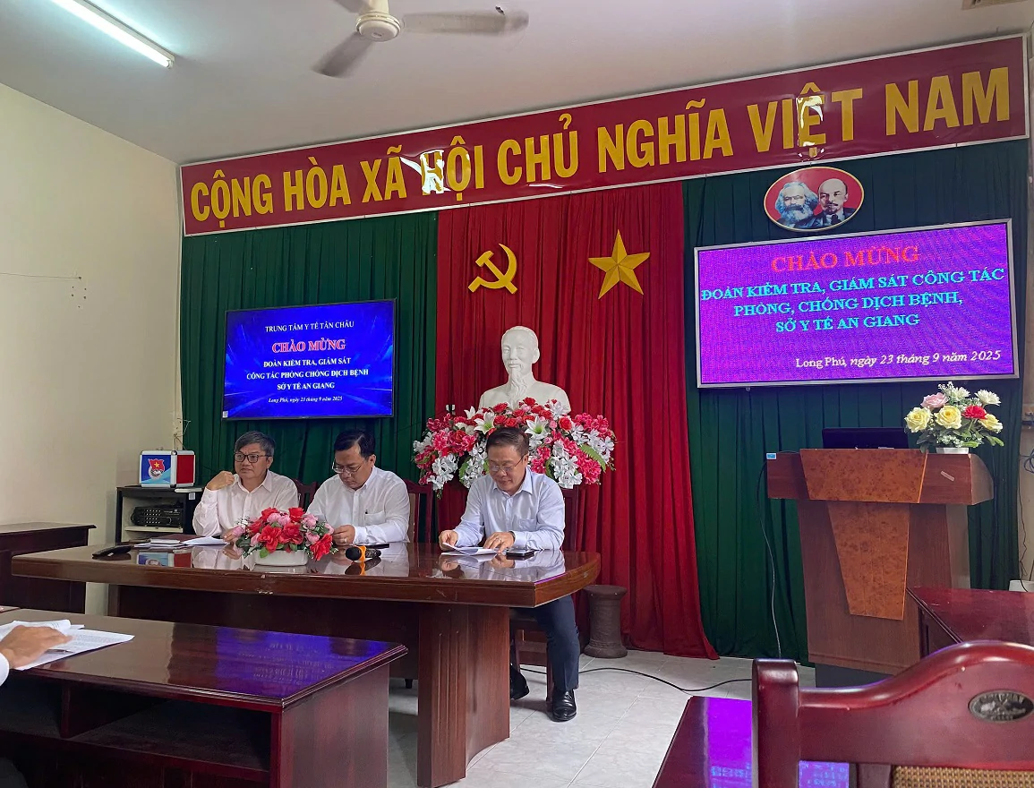 Ngày 23 tháng 9 năm 2025, Đoàn Kiểm tra, giám sát công tác phòng, chống dịch bệnh của Sở Y tế, do Bs.CKII Chung Tấn Thịnh – Phó Giám đốc Sở Y tế làm Trưởng đoàn đã có buổi làm việc tại Trung tâm Y tế Tân Châu.