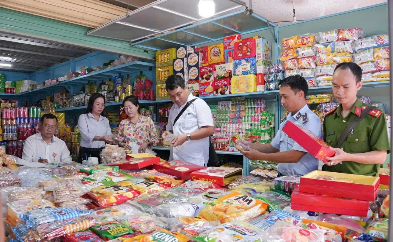Đoàn kiểm tra liên ngành xã Kiên Lương (An Giang) vừa tổ chức kiểm tra công tác vệ sinh an toàn thực phẩm (VSATTP) tại các hộ buôn bán, kinh doanh tại Chợ Tròn Kiên Lương và tại Trung tâm thương mại Ba Hòn nhân dịp Tết Trung thu năm 2025.