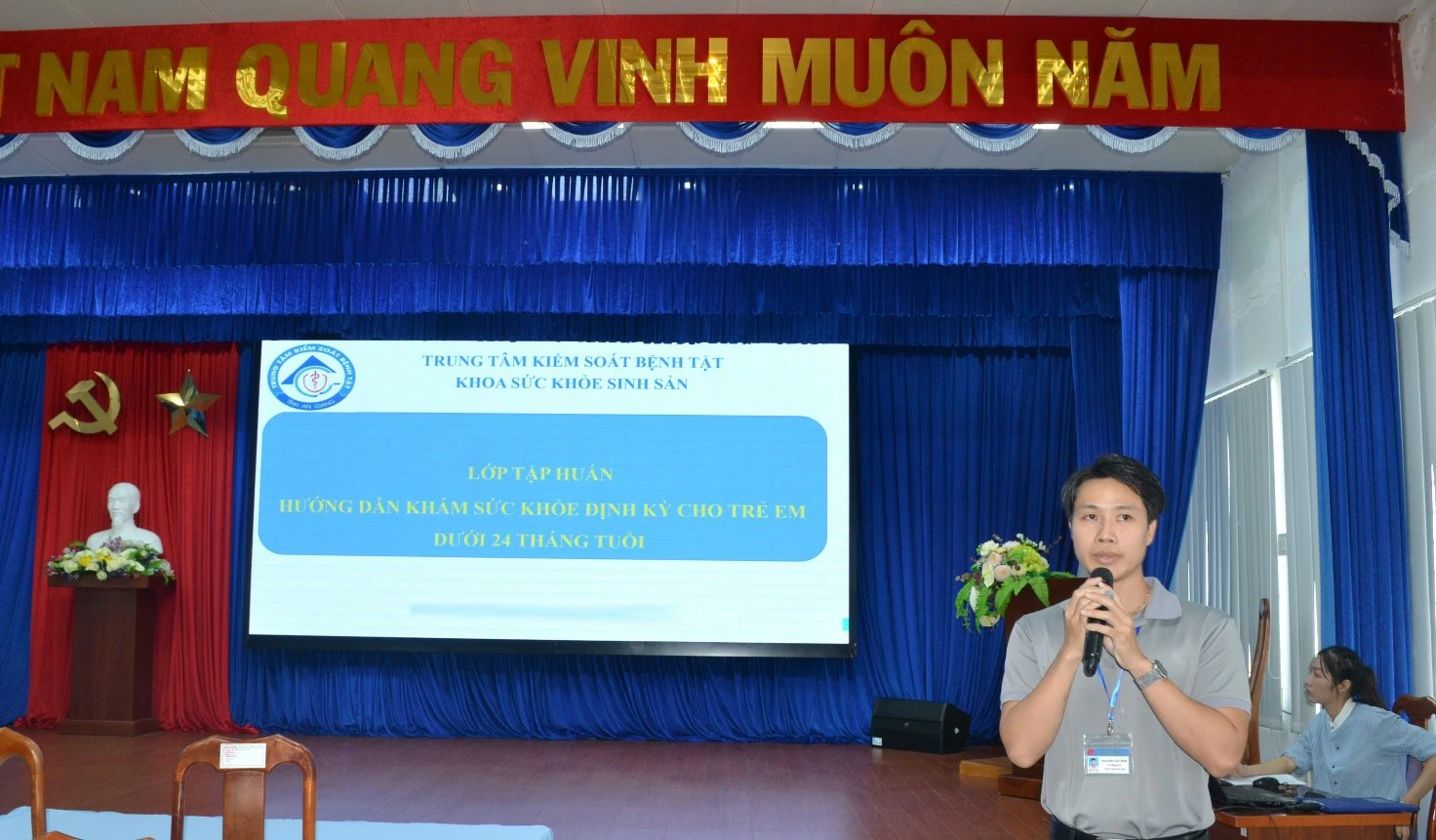 (BS Nguyễn Văn Tỉnh – Khoa SKSS – CDC An Giang báo cáo tại lớp tập huấn)