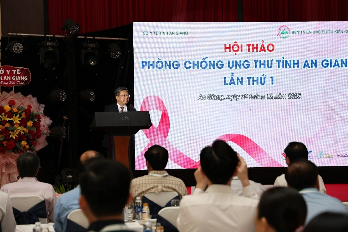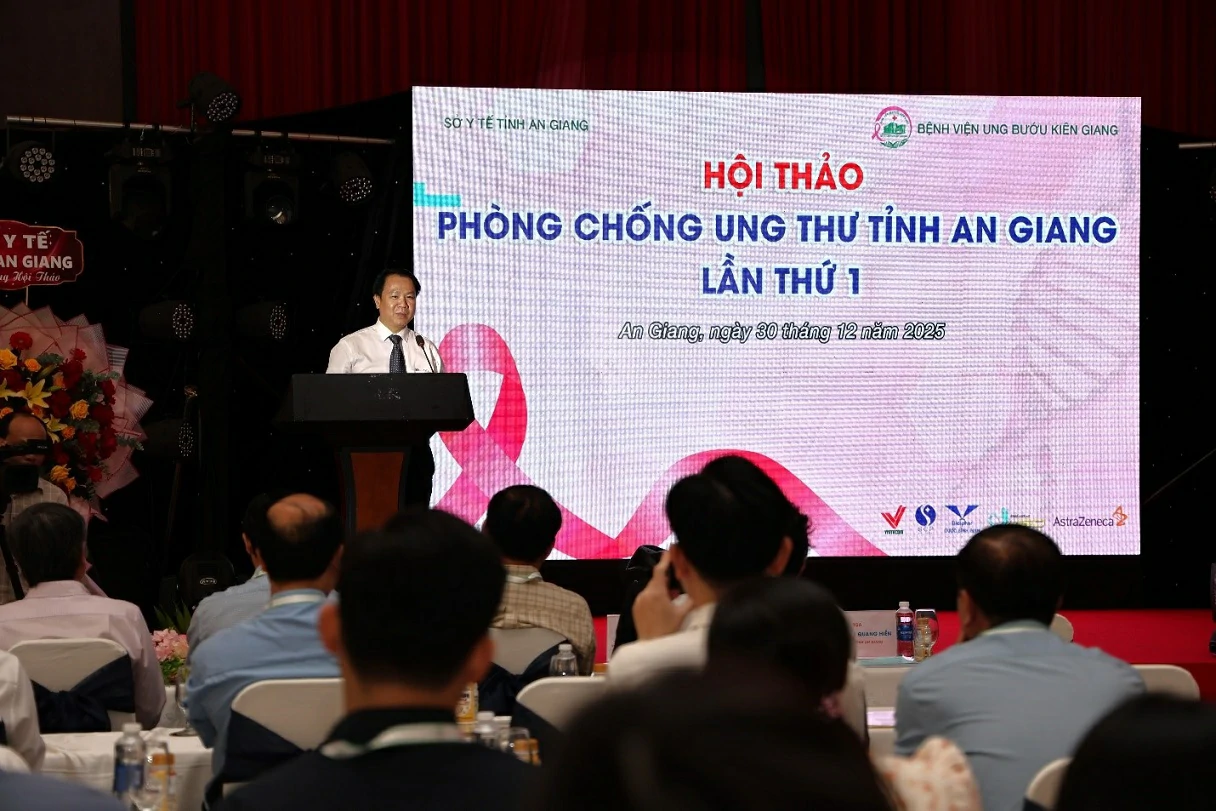 Sáng 30/12, Bệnh viện Ung bướu Kiên Giang tổ chức Hội thảo Phòng, chống Ung thư tỉnh An Giang lần thứ 1 năm 2025, nhằm đánh giá thực trạng, chia sẻ kinh nghiệm và đề xuất giải pháp nâng cao hiệu quả phòng, chống ung thư trên địa bàn tỉnh. Tham dự hội nghị, có PGS.TS.BS Trần Quang Hiền – Giám đốc Sở Y tế An Giang, Ban Giám đốc Bệnh viện Ung bướu Kiên Giang cùng hơn 150 đại biểu là lãnh đạo các bệnh viện trong khu vực, lãnh đạo các bệnh viện, trung tâm y tế trên địa bàn tỉnh An Giang.