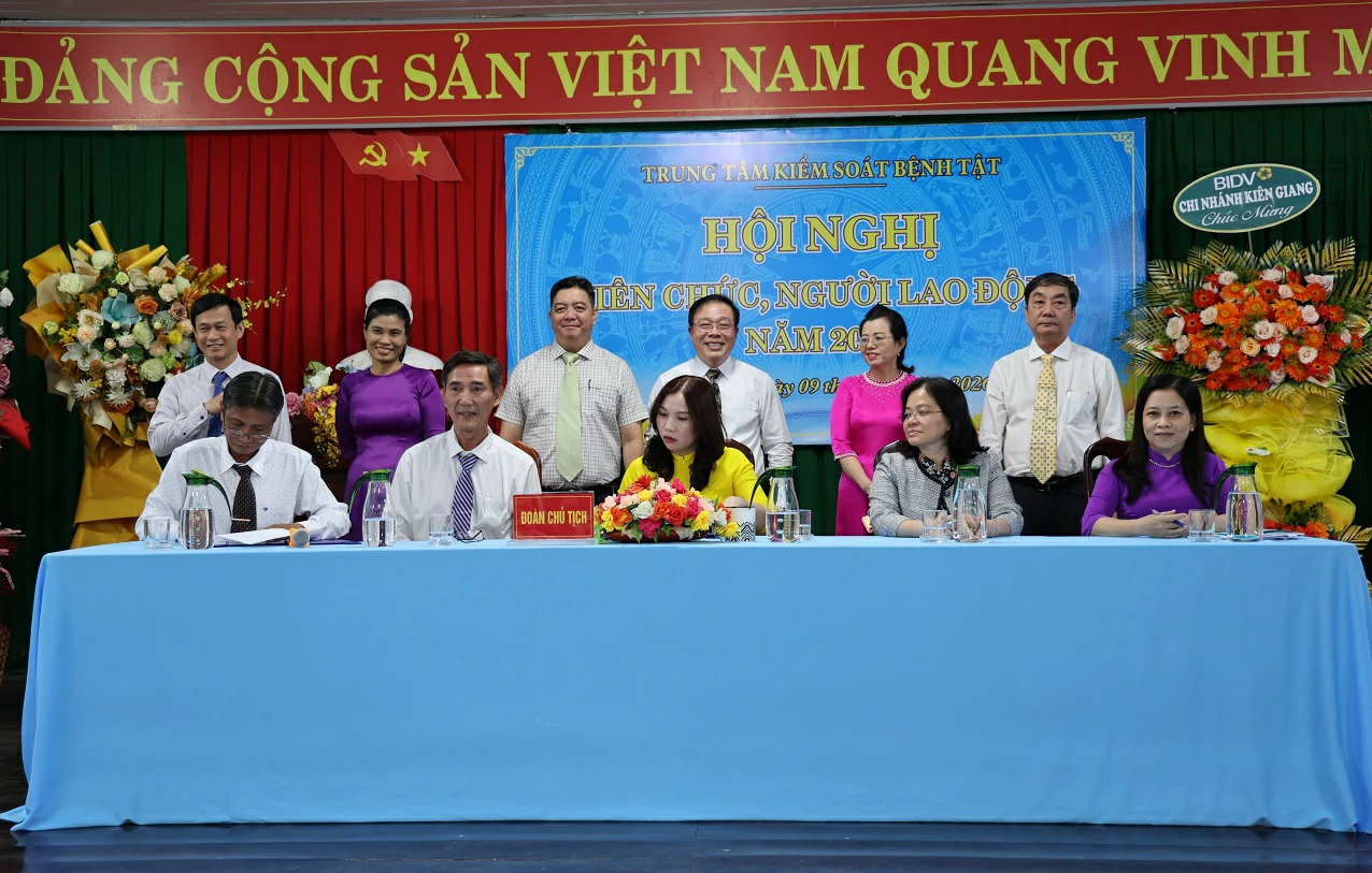 Chiều ngày 09/01/2026, Trung tâm Kiểm soát bệnh tật tỉnh An Giang tổ chức Hội nghị đại biểu viên chức, người lao động năm 2026. Hội nghị nhằm đánh giá kết quả thực hiện nhiệm vụ năm 2025, đồng thời thảo luận và thống nhất phương hướng, nhiệm vụ trọng tâm năm 2026. Tham dự và chỉ đạo hội nghị có Ths.BS Trần Thế Vinh, Bí thư Đảng bộ bộ phận, Giám đốc Trung tâm Kiểm soát Bệnh tật tỉnh cùng Ban Giám đốc Trung tâm, Ban Chấp hành Công đoàn và 130 đại biểu viên chức, người lao động trong đơn vị.