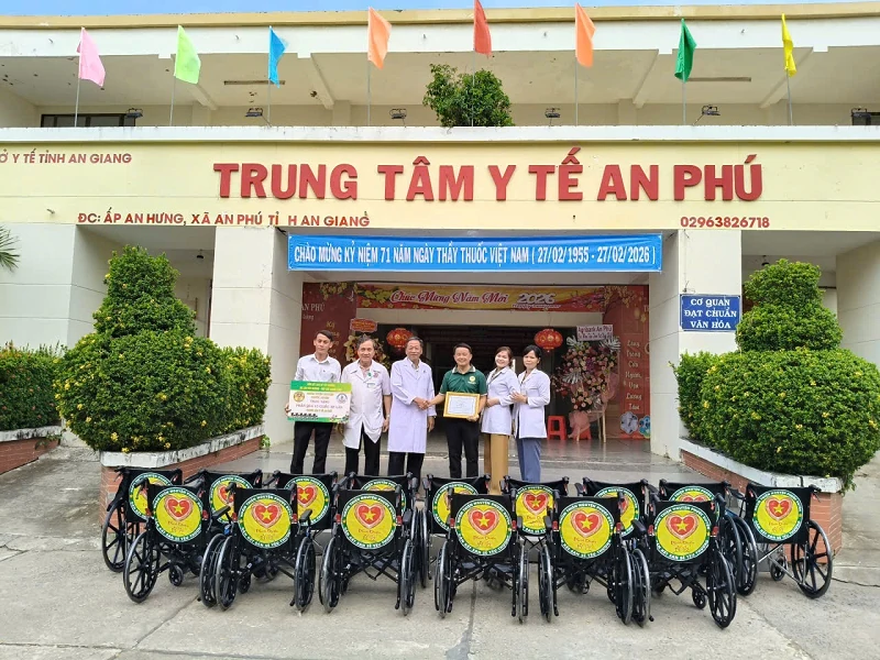 Vừa qua, Tổ Công tác xã hội Phòng Điều dưỡng Trung tâm Y tế An Phú đã tiếp nhận 15 chiếc xe lăn khung thép cao cấp từ Nhóm Thiện nguyện Phước Duyên là nhóm người thân trong gia đình tại xã Phú Hữu trao tặng.