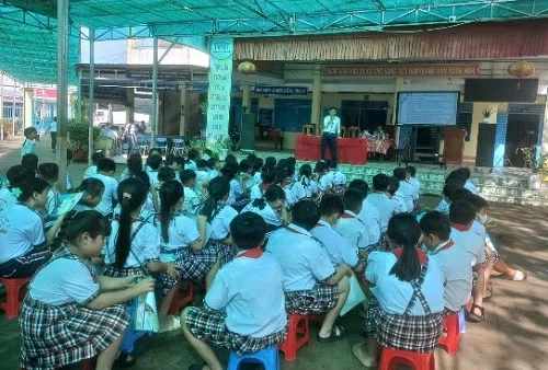 Sáng ngày 23/3/2026, Trạm Y tế xã Long Điền phối hợp với Trường Tiểu học A Mỹ Luông tổ chức buổi truyền thông tuyên truyền, cung cấp kiến thức về phòng, chống bệnh tật học đường cho giáo viên và 30 em học sinh của nhà trường. Hoạt động nhằm góp phần nâng cao nhận thức, hạn chế các yếu tố nguy cơ và giảm tỷ lệ mắc một số bệnh, tật thường gặp ở lứa tuổi học đường.
