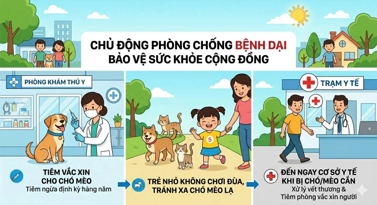 Vắc xin phòng dại an toàn, hiệu quả cao. Tiêm phòng sớm và đủ liều sau phơi nhiễm là biện pháp duy nhất giúp ngăn ngừa tử vong.