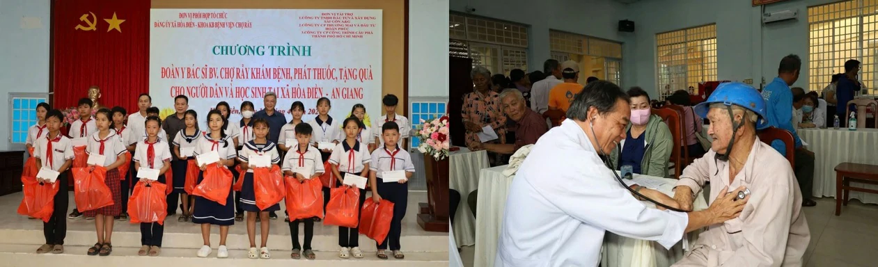 Đảng ủy xã Hòa Điền (tỉnh An Giang) phối hợp Khoa Khám bệnh, bệnh viện Chợ Rẫy TP Hồ Chí Minh tổ chức chương trình khám bệnh, phát thuốc miễn phí và tặng quà cho thương bệnh binh, gia đình chính sách, hộ nghèo, cận nghèo, hộ có hoàn cảnh khó khăn, học sinh nghèo hiếu học trên địa bàn. Tham dự chương trình có ông Nguyễn Trường Sơn, Nguyên Thứ trưởng Bộ Y tế, nguyên Giám Đốc Bệnh viện Chợ Rẫy, ông Nguyễn Quốc Bình, Phó Giám Đốc Bệnh viện Chợ Rẫy, bà Lâm Nguyễn Nhã Trúc, Chủ tịch Công đoàn Bệnh viện Chợ Rẫy, Trưởng khoa Chăm sóc sức khỏe yêu cầu. Về phía Lãnh đạo xã Hòa Điền có ông Lê Thanh Hưởng, Bí thư Đảng ủy xã, bà Nguyễn Thị Mỹ Nhung, Phó Bí thư Thường trực Đảng ủy – Chủ tịch HĐND xã, ông Hồ Thành Trương, Phó Chủ tịch UBND xã.